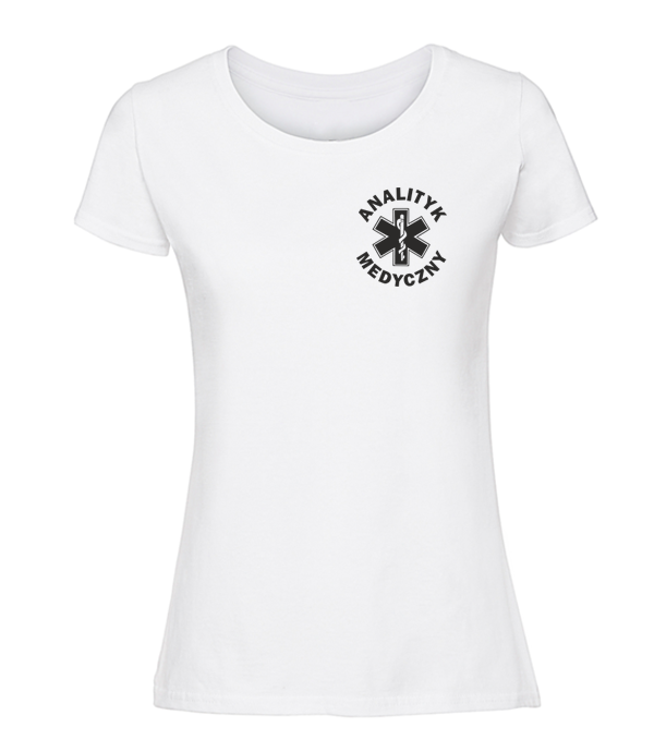 Damska koszulka z nadrukiem – ANALITYK MEDYCZNY