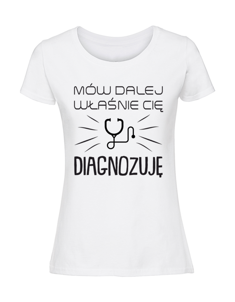 Damska koszulka z nadrukiem – Mów dalej właśnie Cię diagnozuję