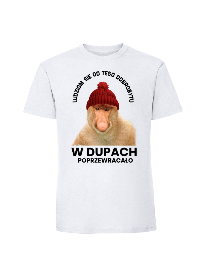 Męska koszulka z nadrukiem – LUDZIOM SIĘ OD TEGO DOBROBYTU NOSACZ
