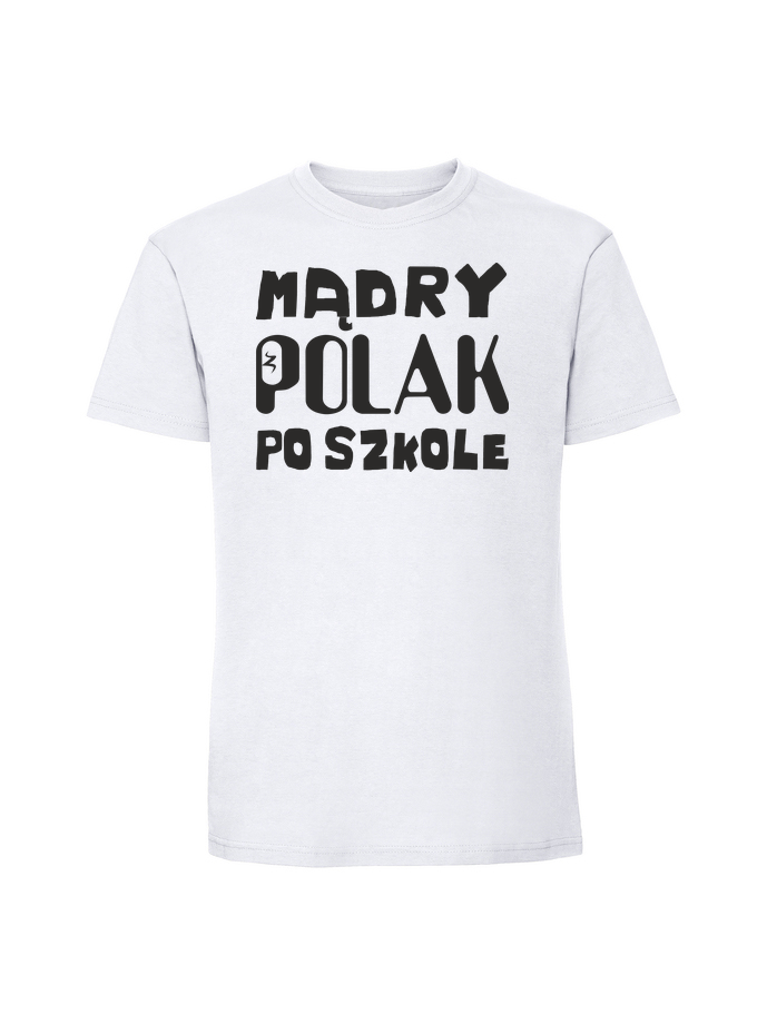 Męska koszulka z nadrukiem – Mądry polak po szkole