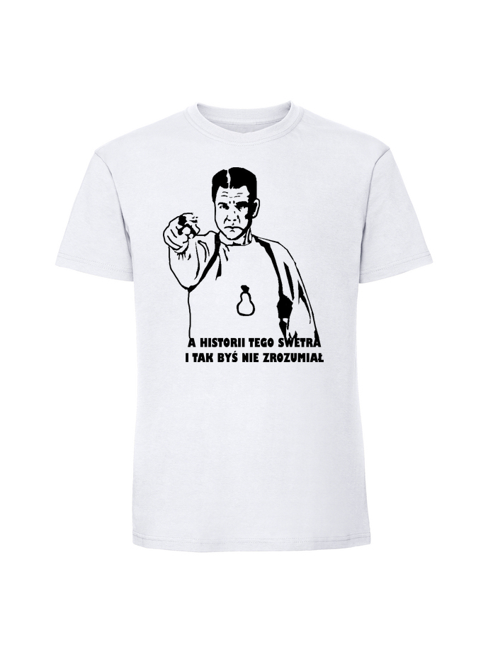 Męska koszulka z nadrukiem – A HISTORII TEGO SWETRA I TAK BYŚ NIE ZROZUMIAŁ