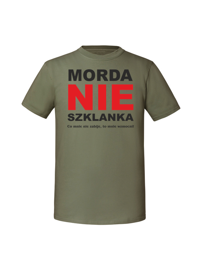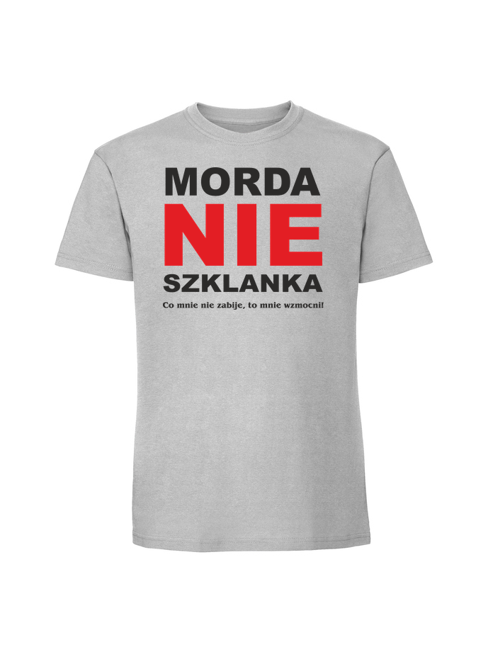 Męska koszulka z nadrukiem – morda nie szklanka co mnie nie zabije