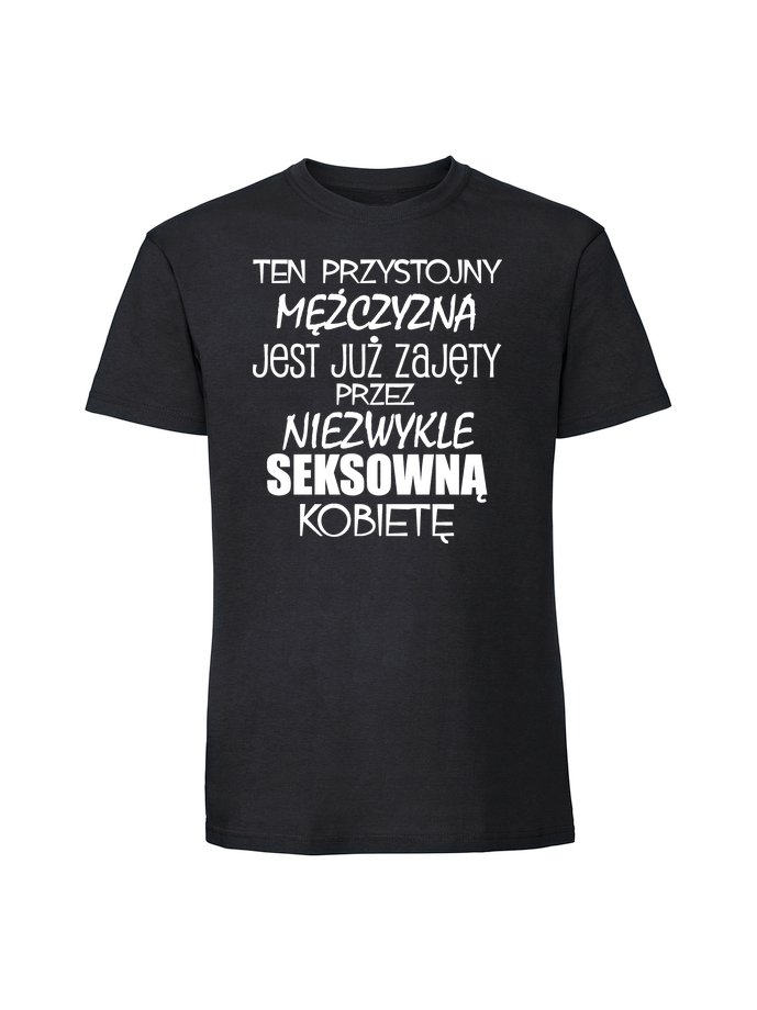 Męska koszulka z nadrukiem – TEN MĘŻCZYZNA JEST JUŻ ZAJĘTY PRZEZ SEKSOWNĄ KOBIETĘ