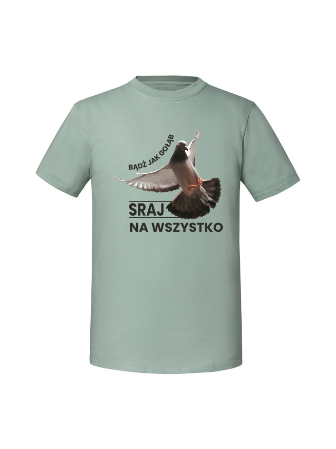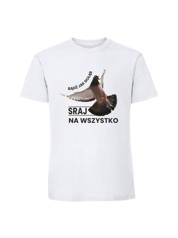 Męska koszulka z nadrukiem – Bądź jak gołąb sraj na wszystko