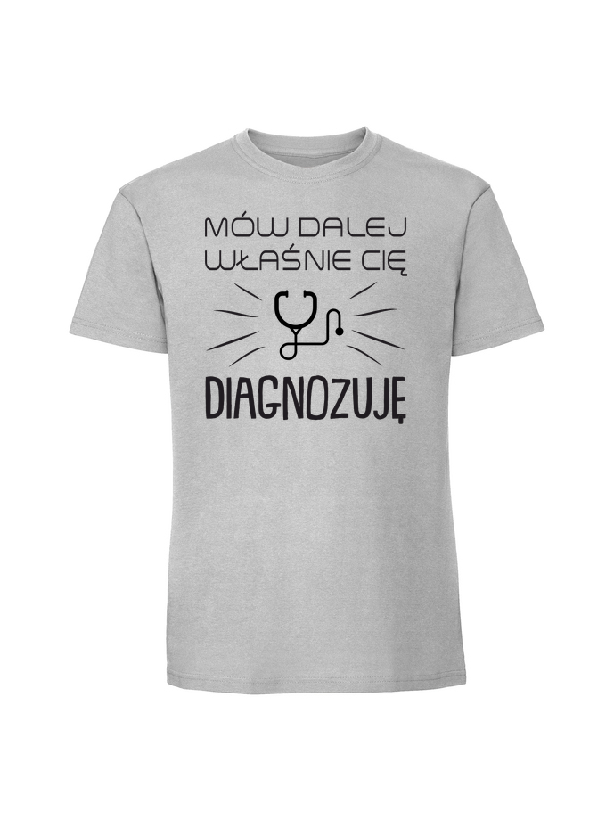 Męska koszulka z nadrukiem – Mów dalej właśnie Cię diagnozuję