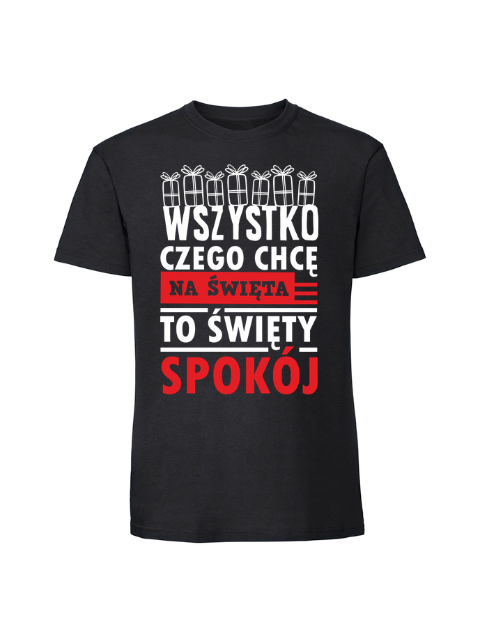 Męska koszulka z nadrukiem – wszystko czego chcę na święta to święty spokój