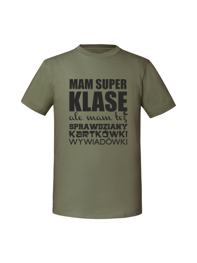 Męska koszulka z nadrukiem – Mam super klase ale mam tez sprawdziany kartkowki