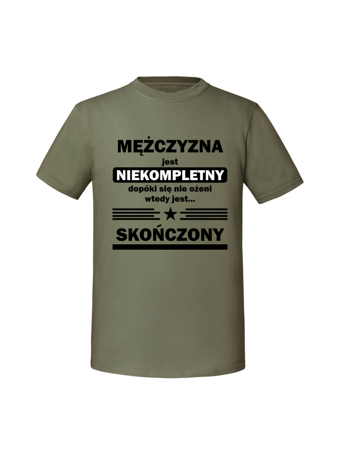 Męska koszulka z nadrukiem – MEZCZYZNA-JEST-NIEKOMPLETNY-DOPOKI-SIE-NIE-OZENI-WTEDY-JEST-SKONCZONY