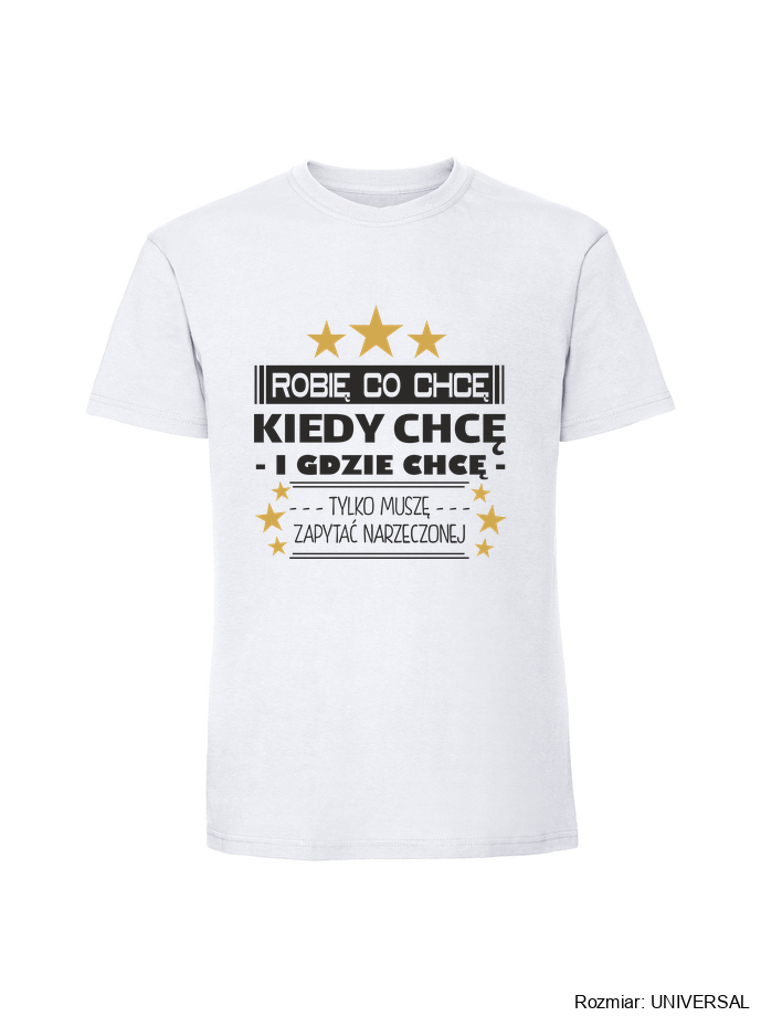 Męska koszulka z nadrukiem – Robie co chce kiedy chce tylko musze zapytac narzeczonej