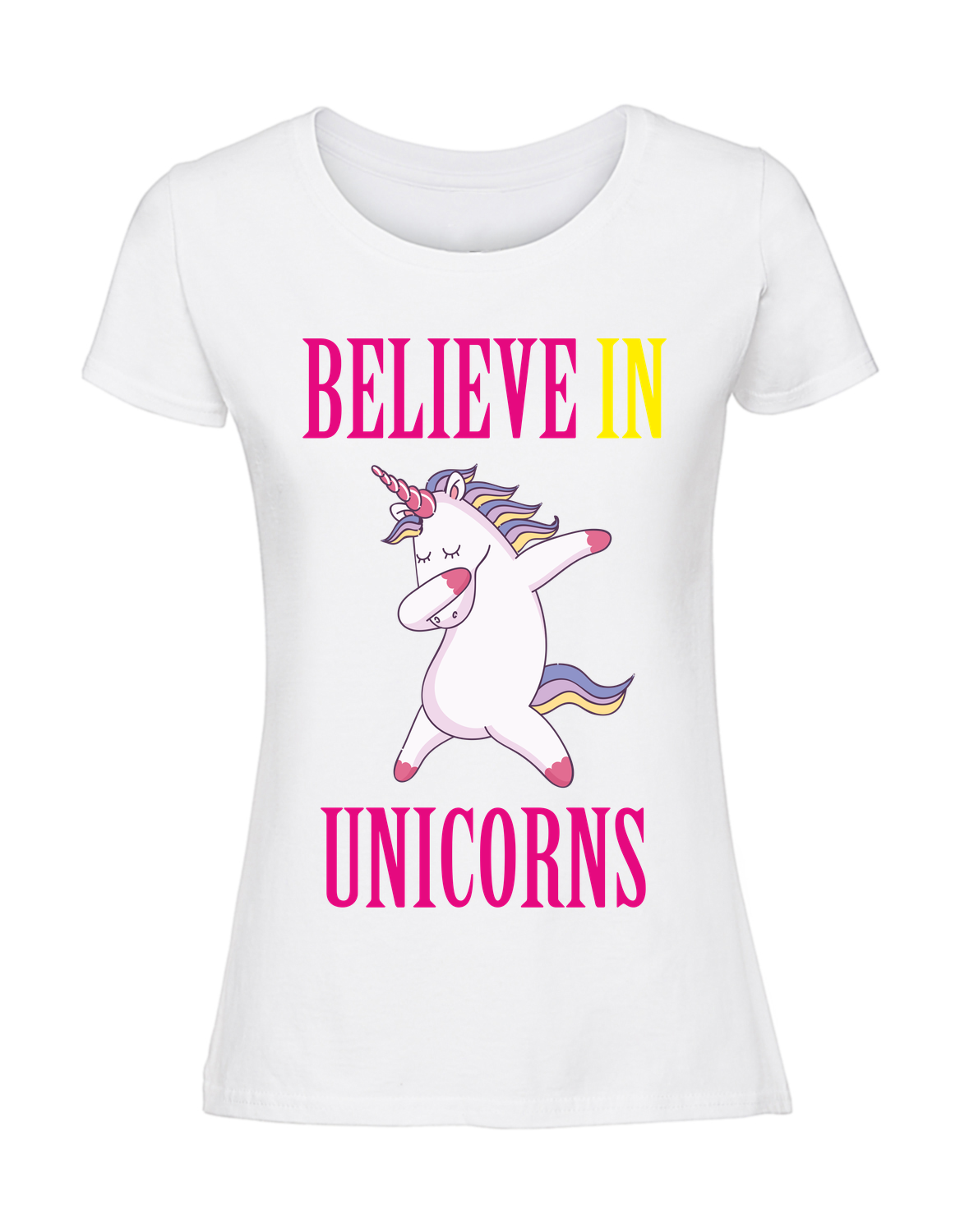 Damska koszulka z nadrukiem – believe-in-unicorns