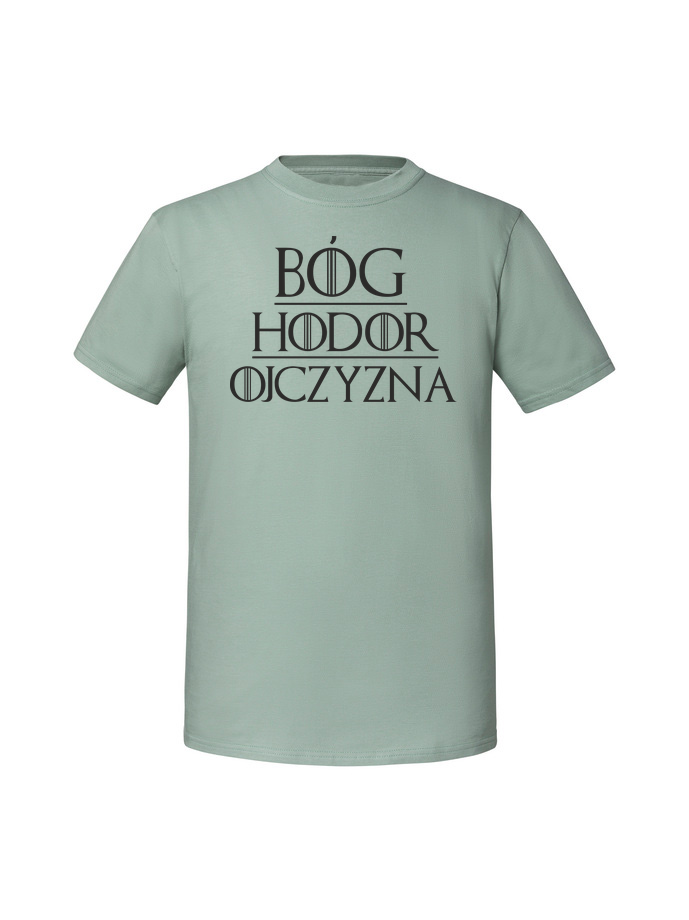 Męska koszulka z nadrukiem – Bóg hodor ojczyzna