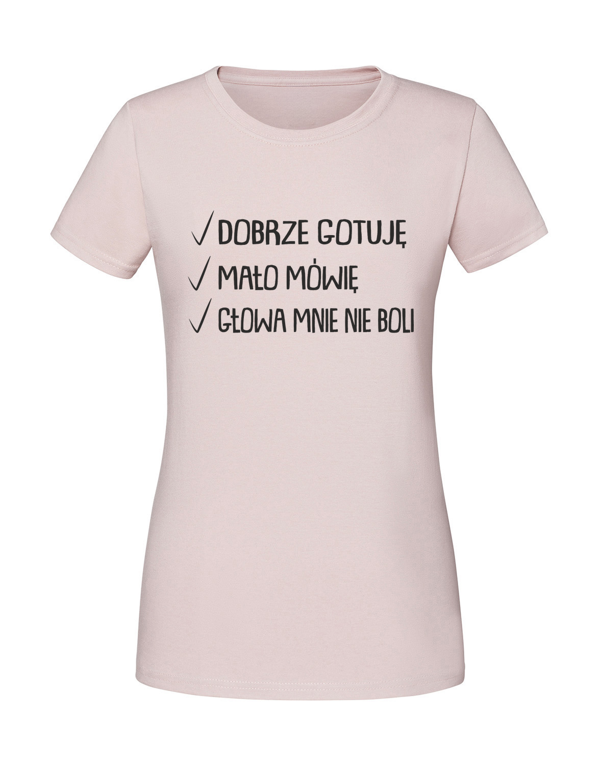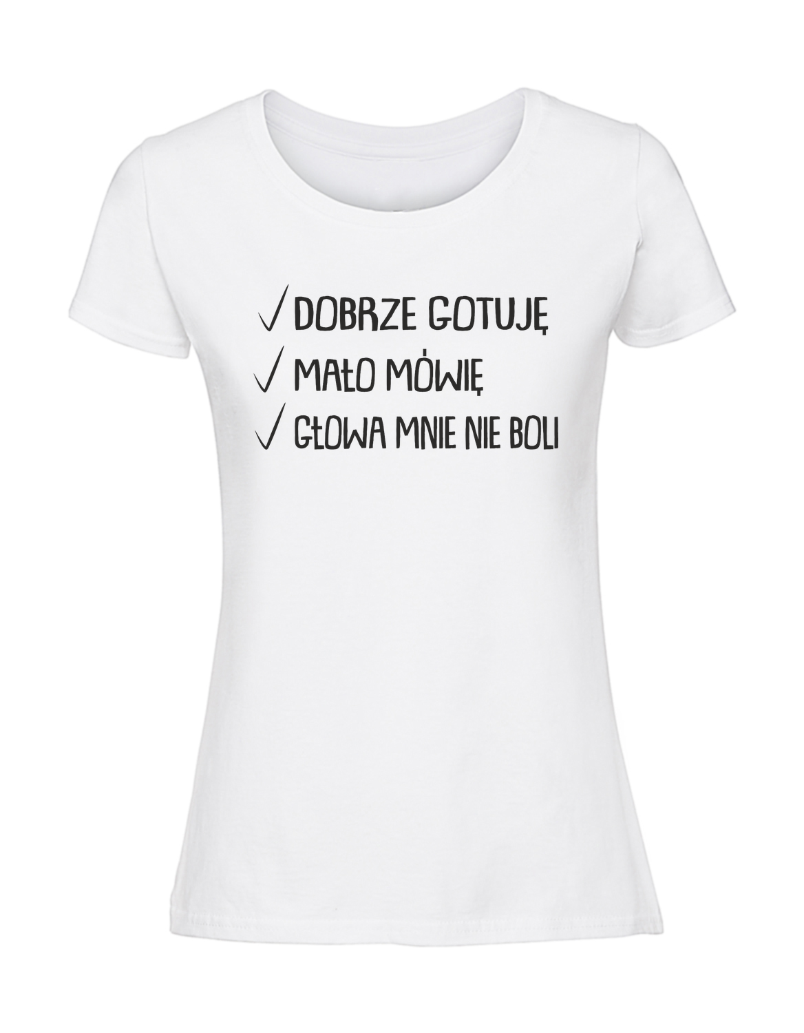 Damska koszulka z nadrukiem – Dobrze gotuję mało mówię