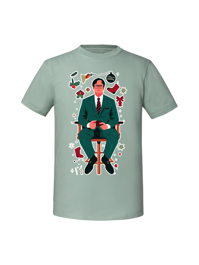 Męska koszulka z nadrukiem dwight schrute the office merry christmas – komfort, jakość i styl w jednym