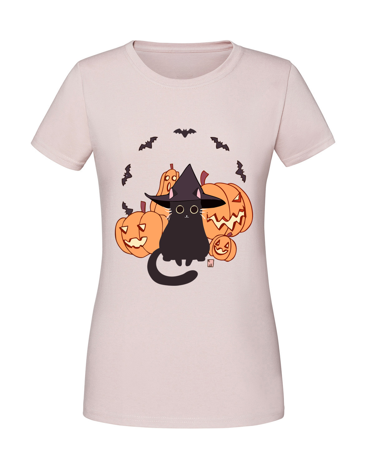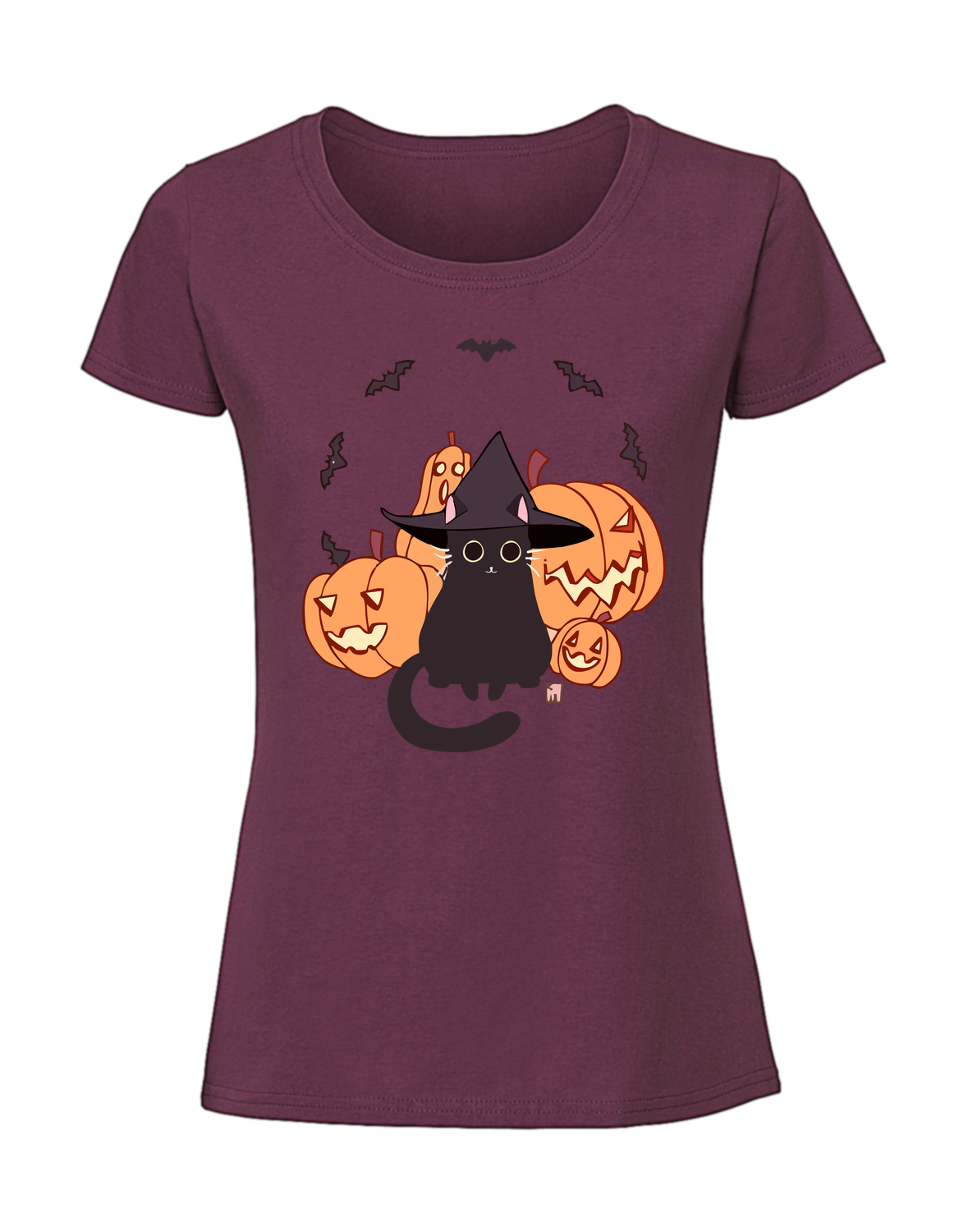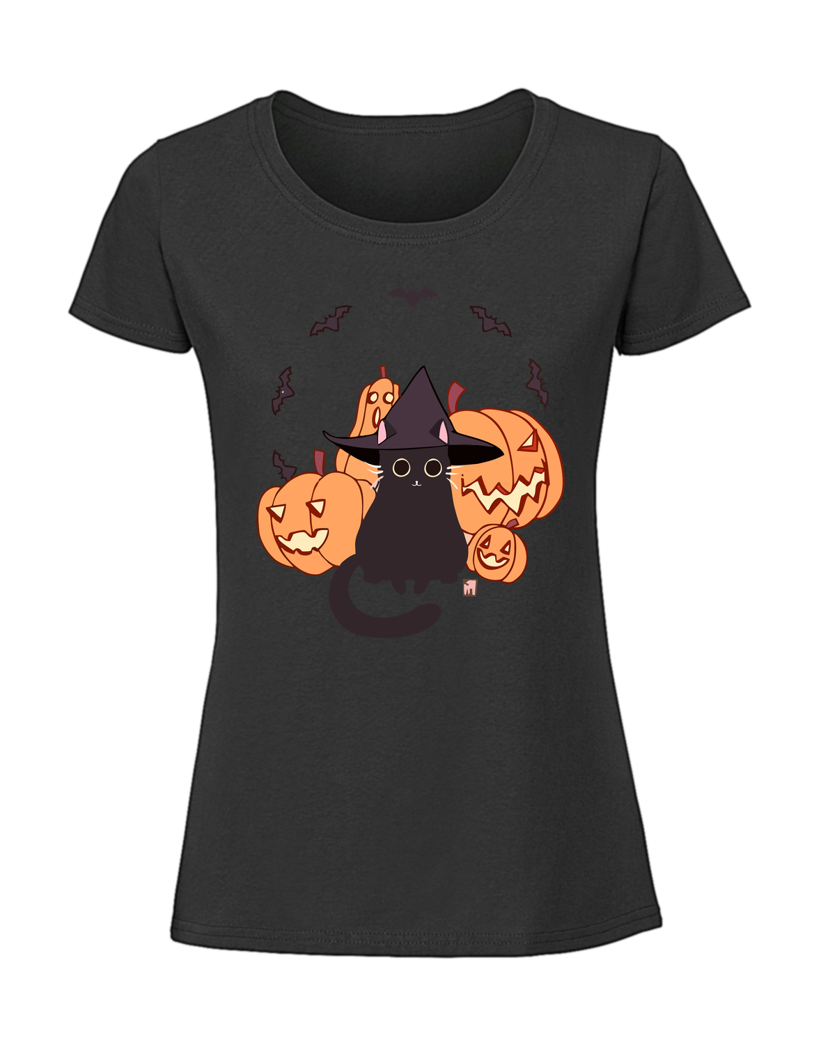 Damska koszulka z nadrukiem – kot dynie nietoperze