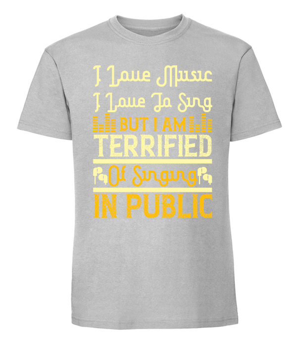 Męska koszulka z nadrukiem – I Love Music I Love To Sing But I Am Terrified Of Singing In Public