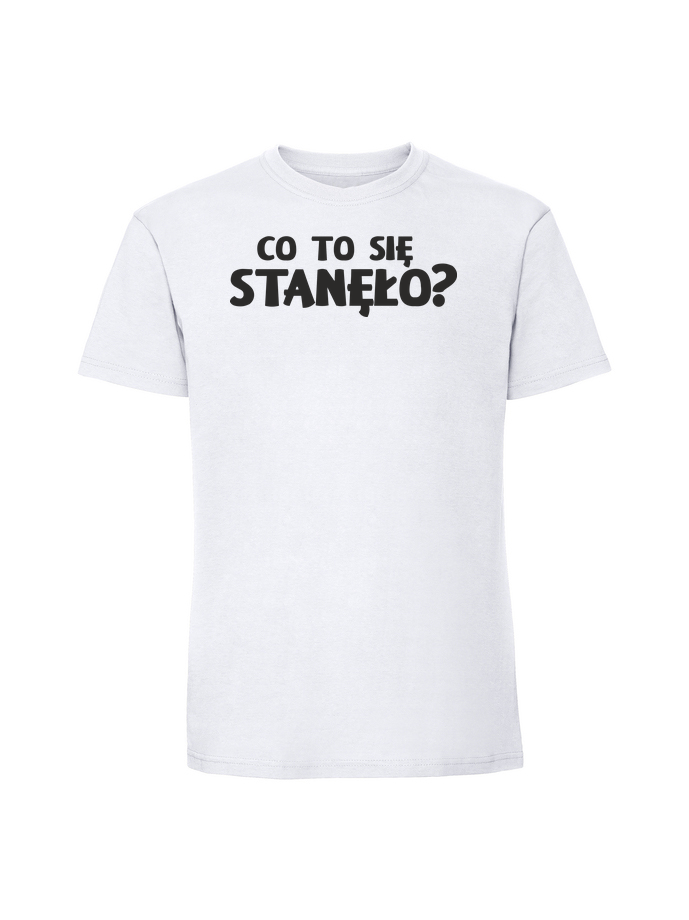 Męska koszulka z nadrukiem CO TO SIĘ STANĘŁO – komfort, jakość i styl w jednym