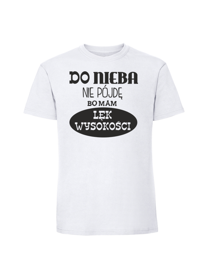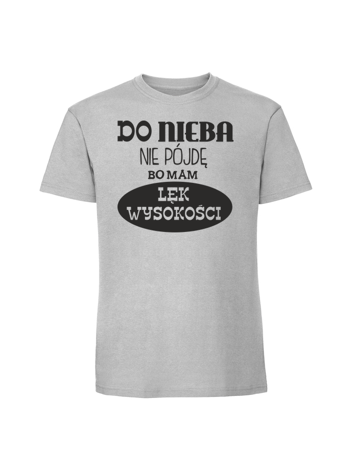 Męska koszulka z nadrukiem – do nieba nie pójdę bo mam lęk wysokości