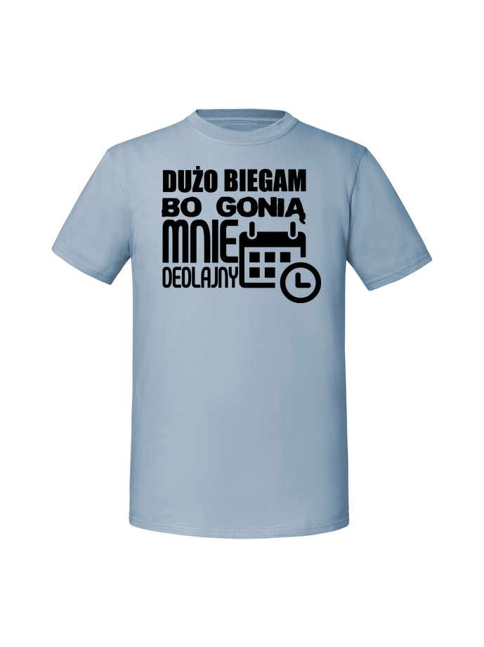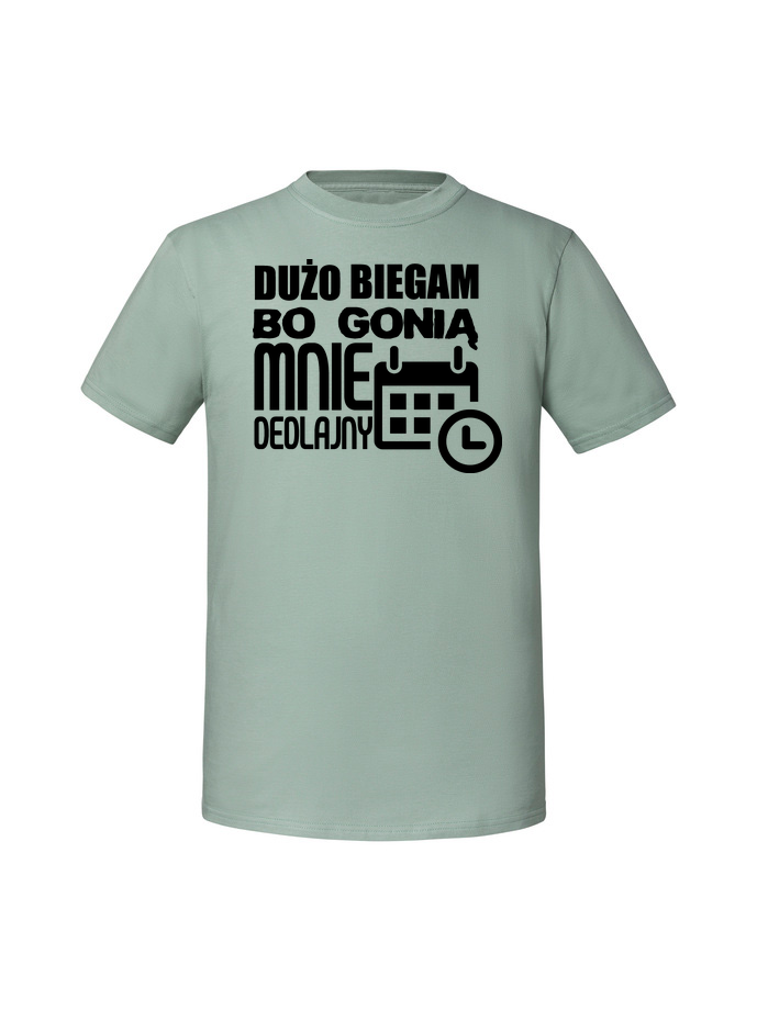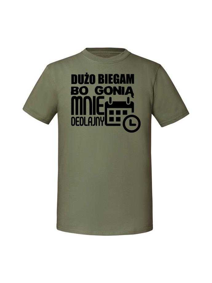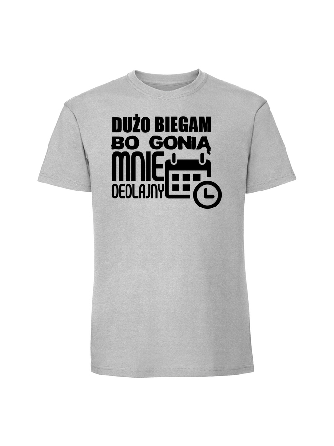 Męska koszulka z nadrukiem – Dużo biegam bo gonią mnie dedlajny