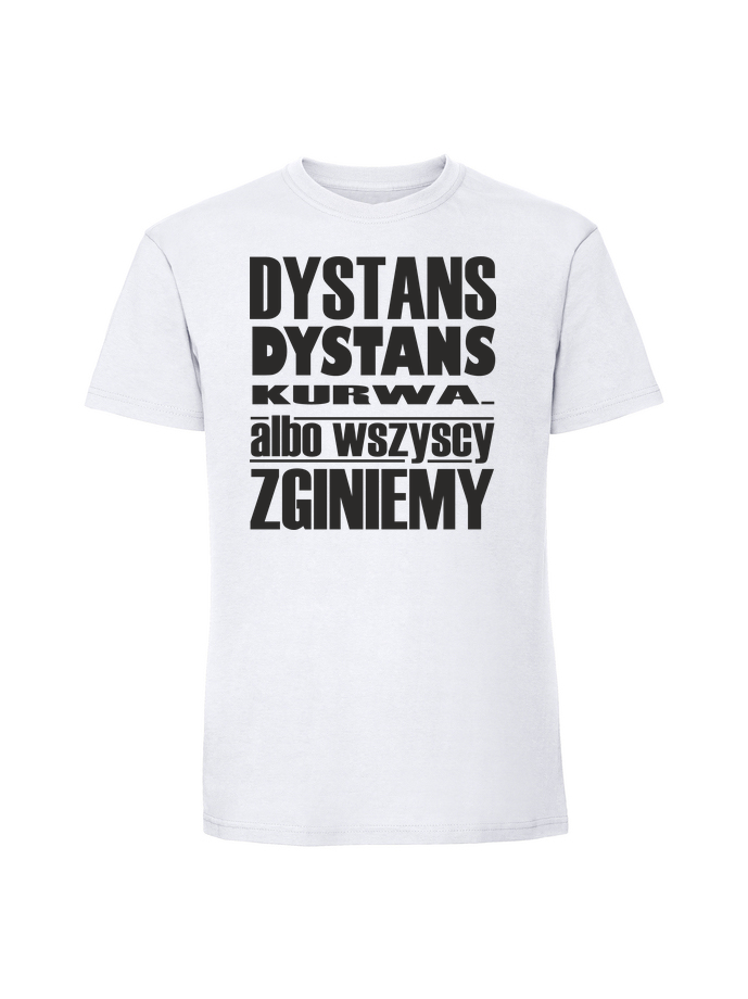 Męska koszulka z nadrukiem – DYSTANS ALBO WSZYSCY ZGINIEMY v1