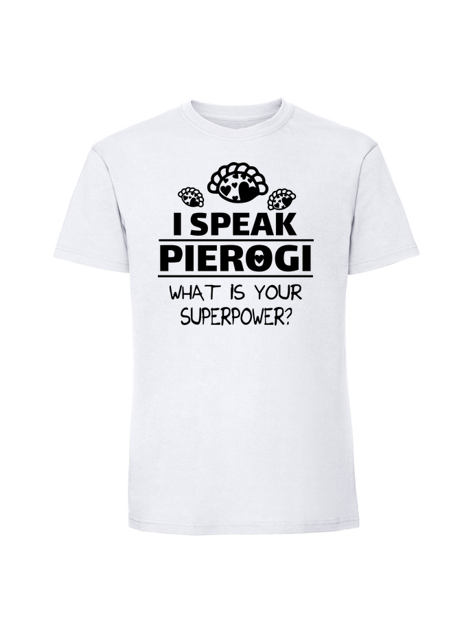 Męska koszulka z nadrukiem I speak pierogi – komfort, jakość i styl w jednym