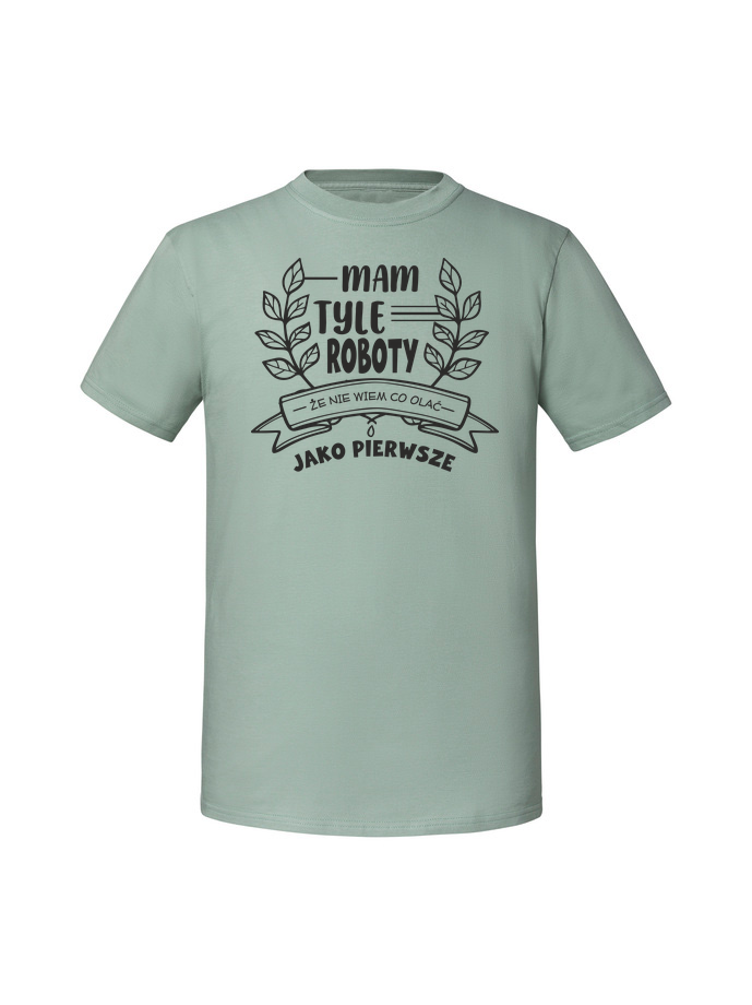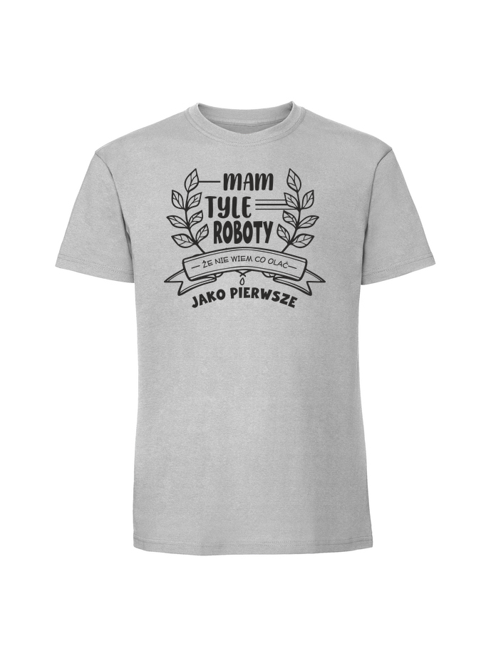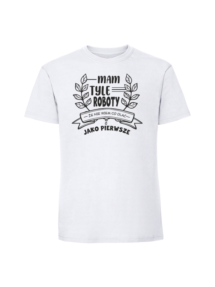 Męska koszulka z nadrukiem – MAM TYLE ROBOTY ŻE NIE WIEM CO OLAĆ JAKO PIERWSZE