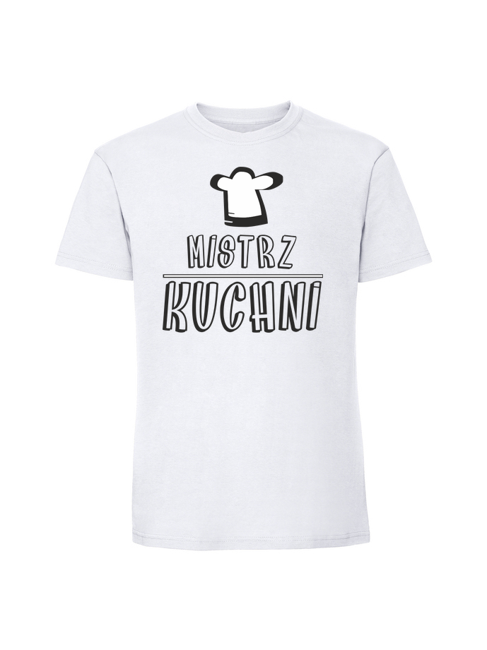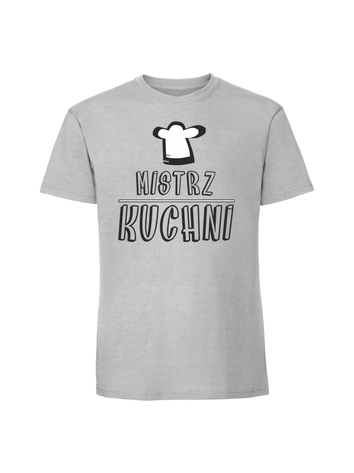 Męska koszulka z nadrukiem mistrz kuchni – komfort, jakość i styl w jednym