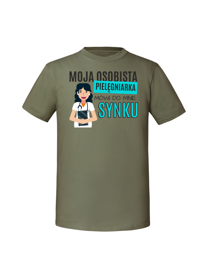 Męska koszulka z nadrukiem – moja osobista pielęgniarka mówi do mnie synku v1