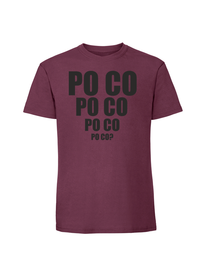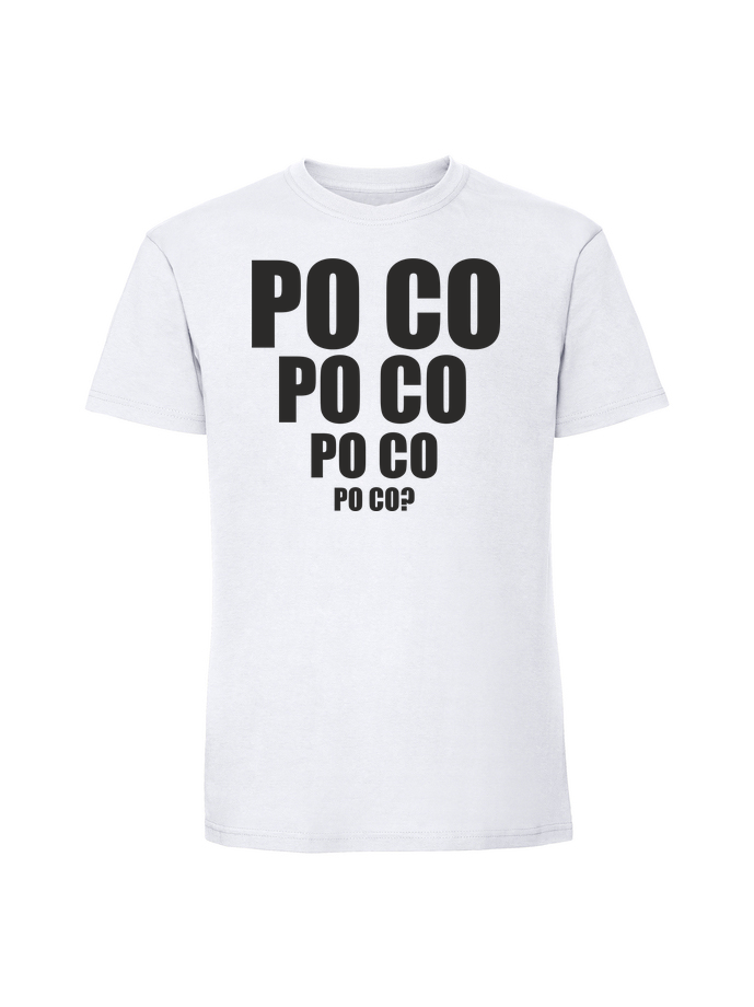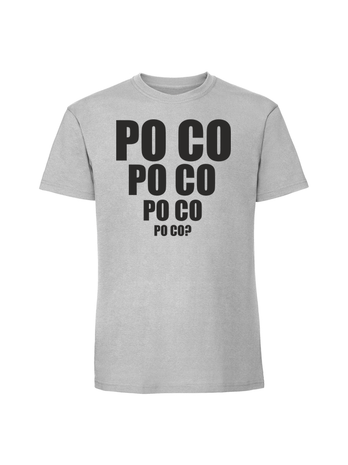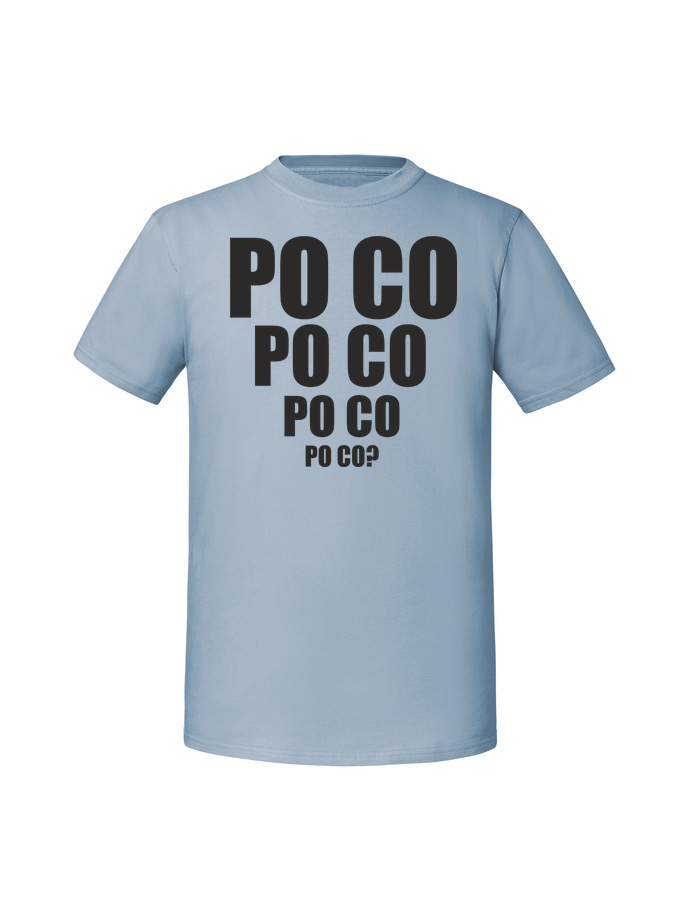 Koszulka męska z nadrukiem 'po co po co’ wykonana w 100% z czesanej bawełny ringspun (195 g/m²). Miękka w dotyku, przewiewna i niezwykle przyjemna w noszeniu. Certyfikaty OEKO TEX i AMFORI.