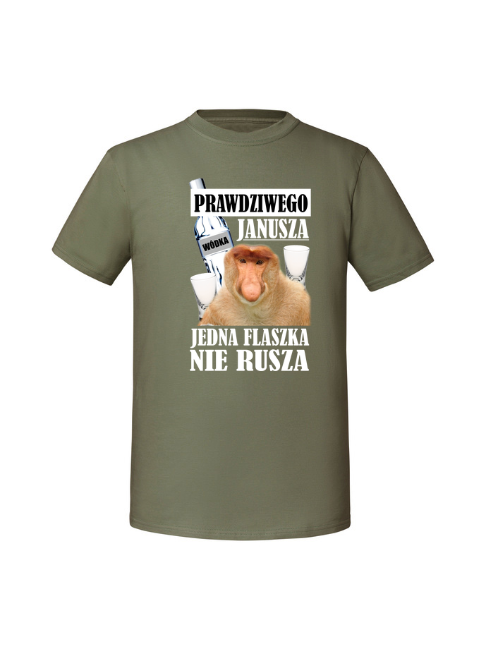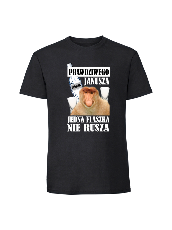Męska koszulka z nadrukiem – Prawdziwego Janusza jedna flaszka nie rusza v1