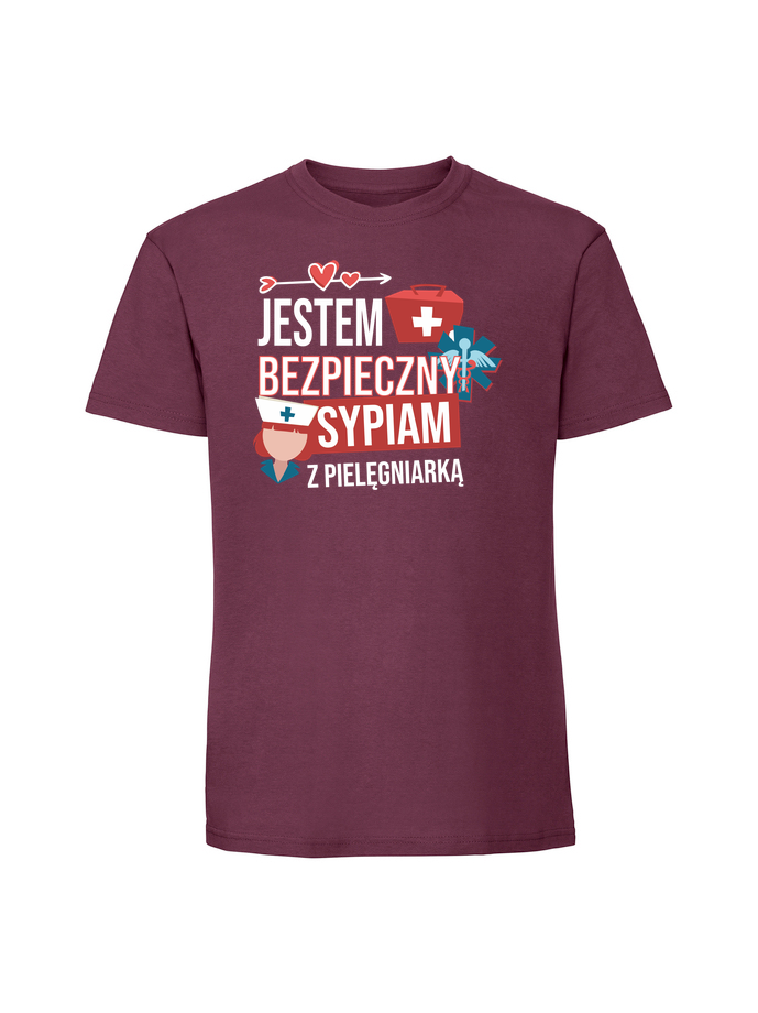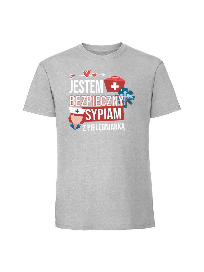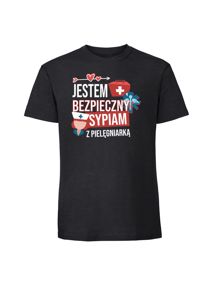 Męska koszulka z nadrukiem – sypiam z pielęgniarką jestem bezpieczny v2