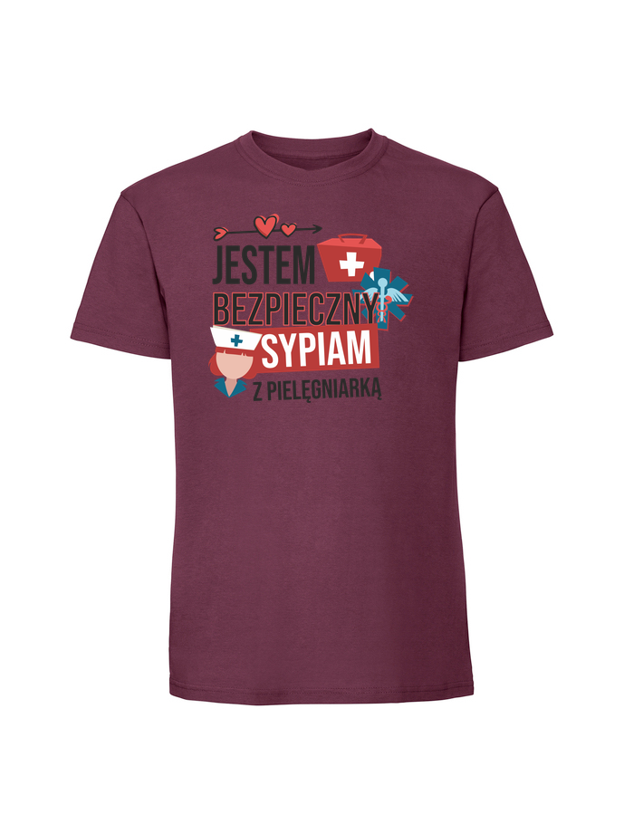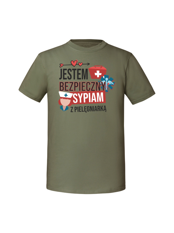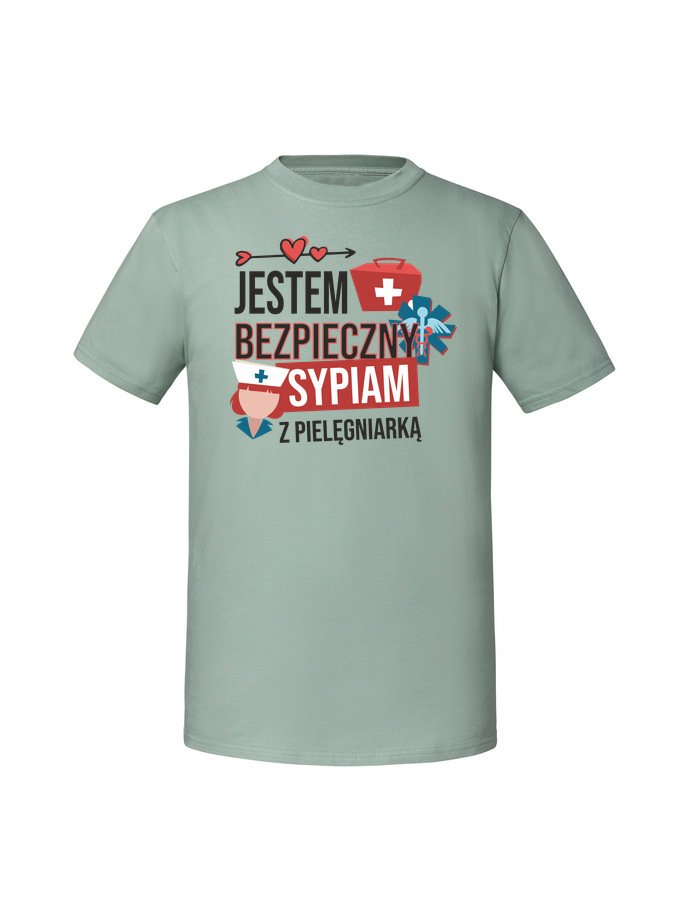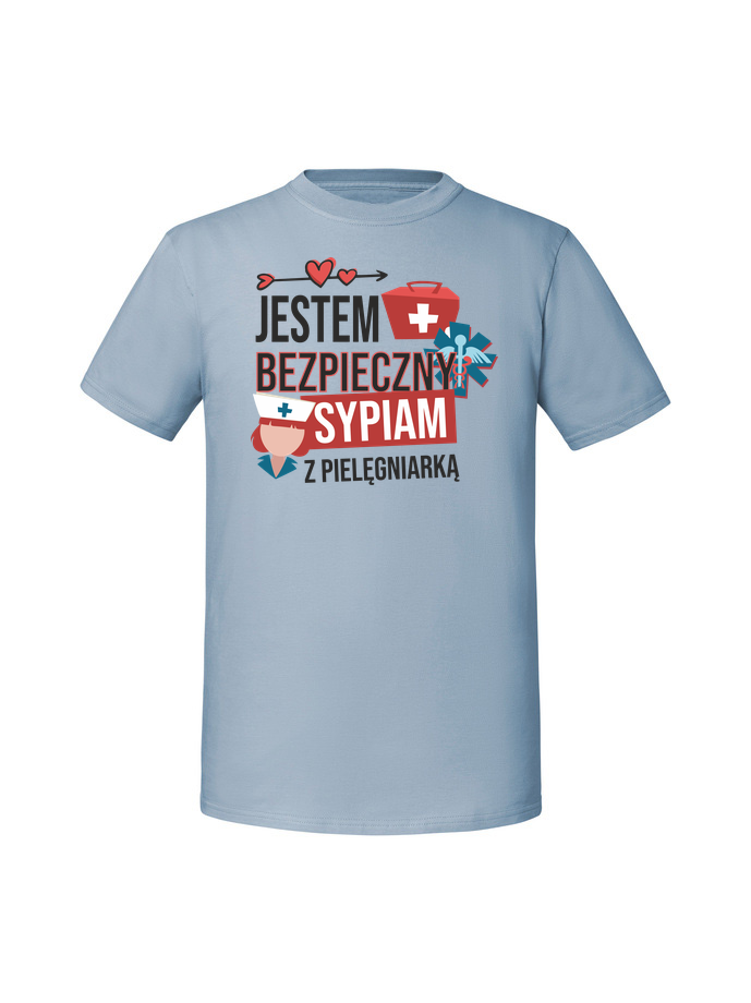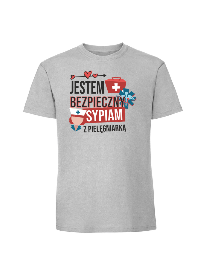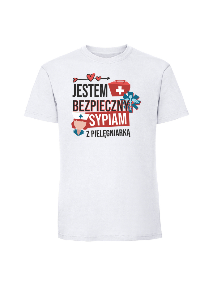 Męska koszulka z nadrukiem – sypiam z pielęgniarką jestem bezpieczny