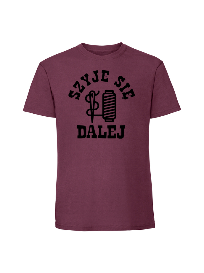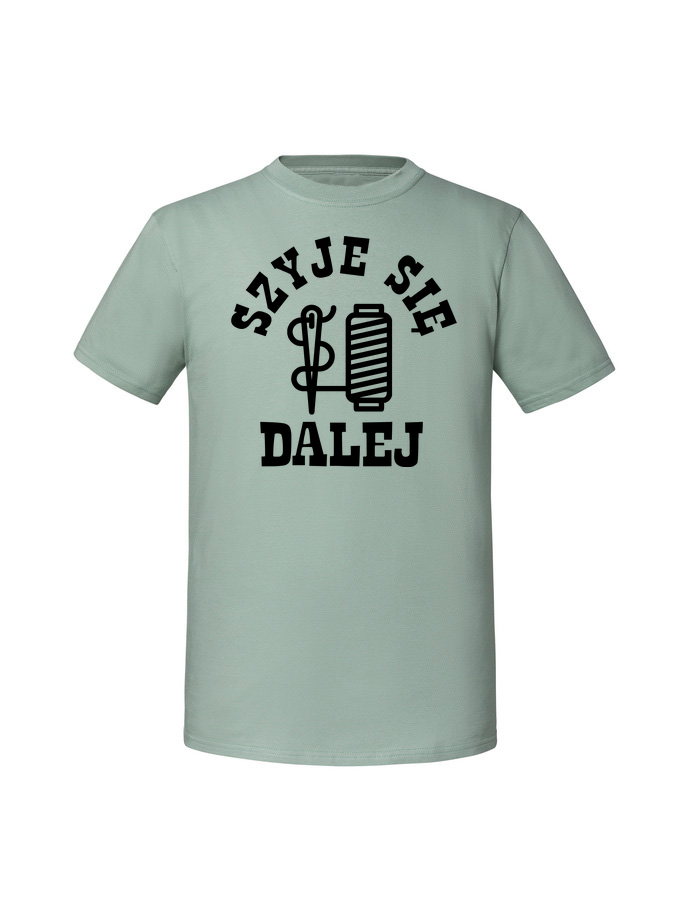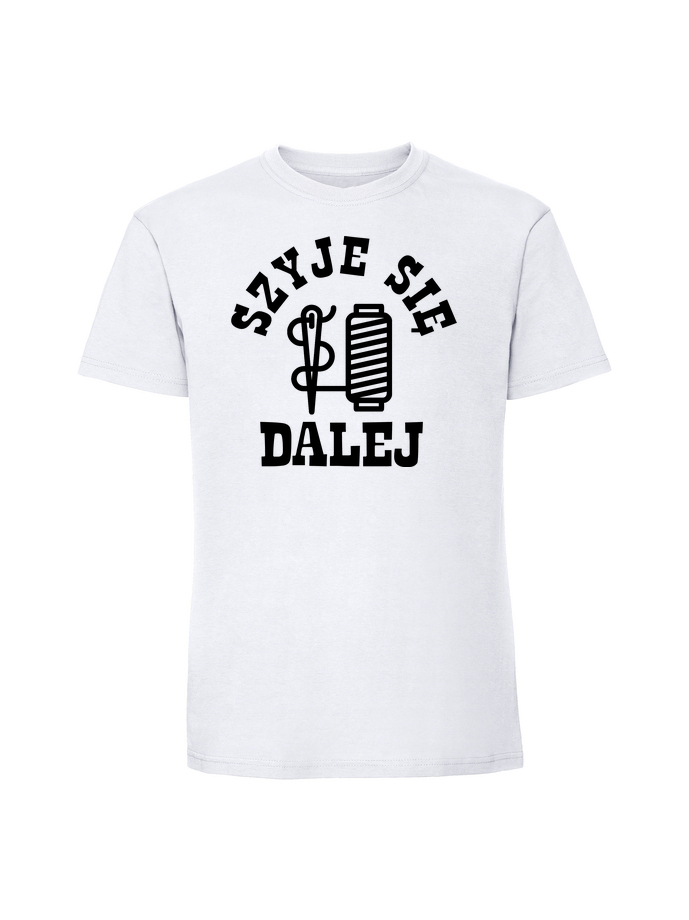 Koszulka męska z nadrukiem 'szyje się’ wykonana w 100% z czesanej bawełny ringspun (195 g/m²). Miękka w dotyku, przewiewna i niezwykle przyjemna w noszeniu. Certyfikaty OEKO TEX i AMFORI.
