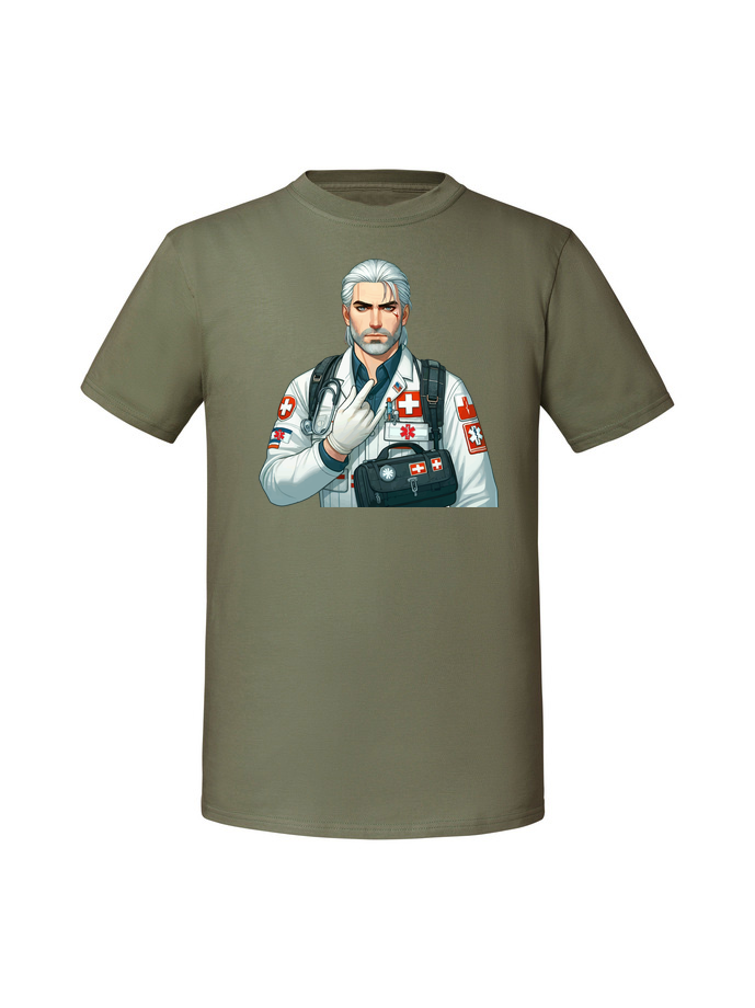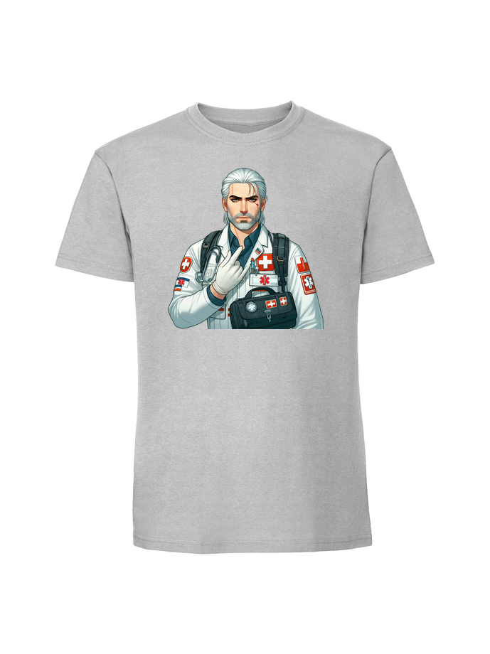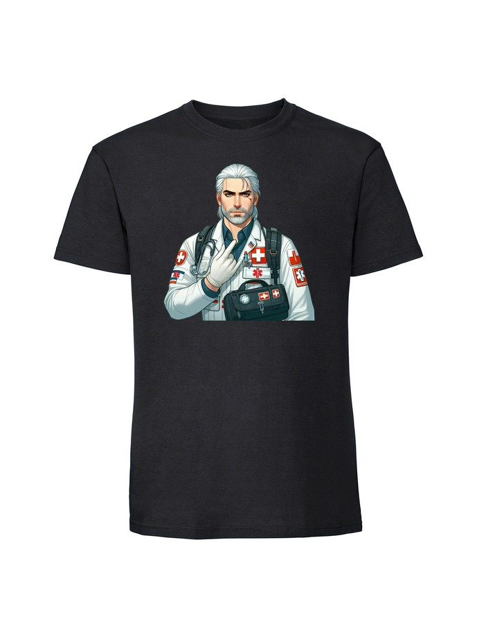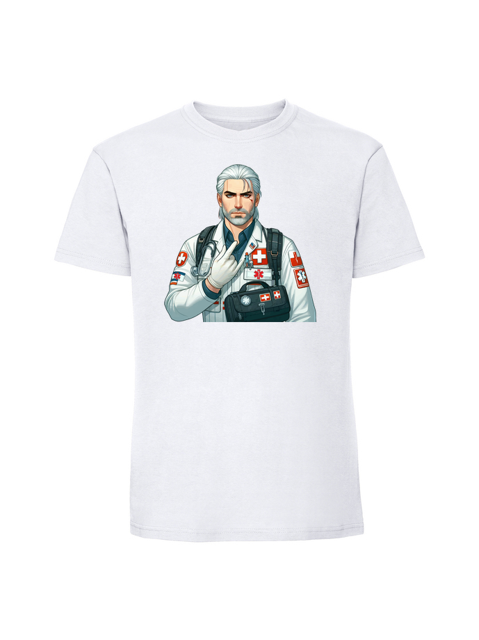 Męska koszulka z nadrukiem – wiedźmin medyk ratownik medyczny