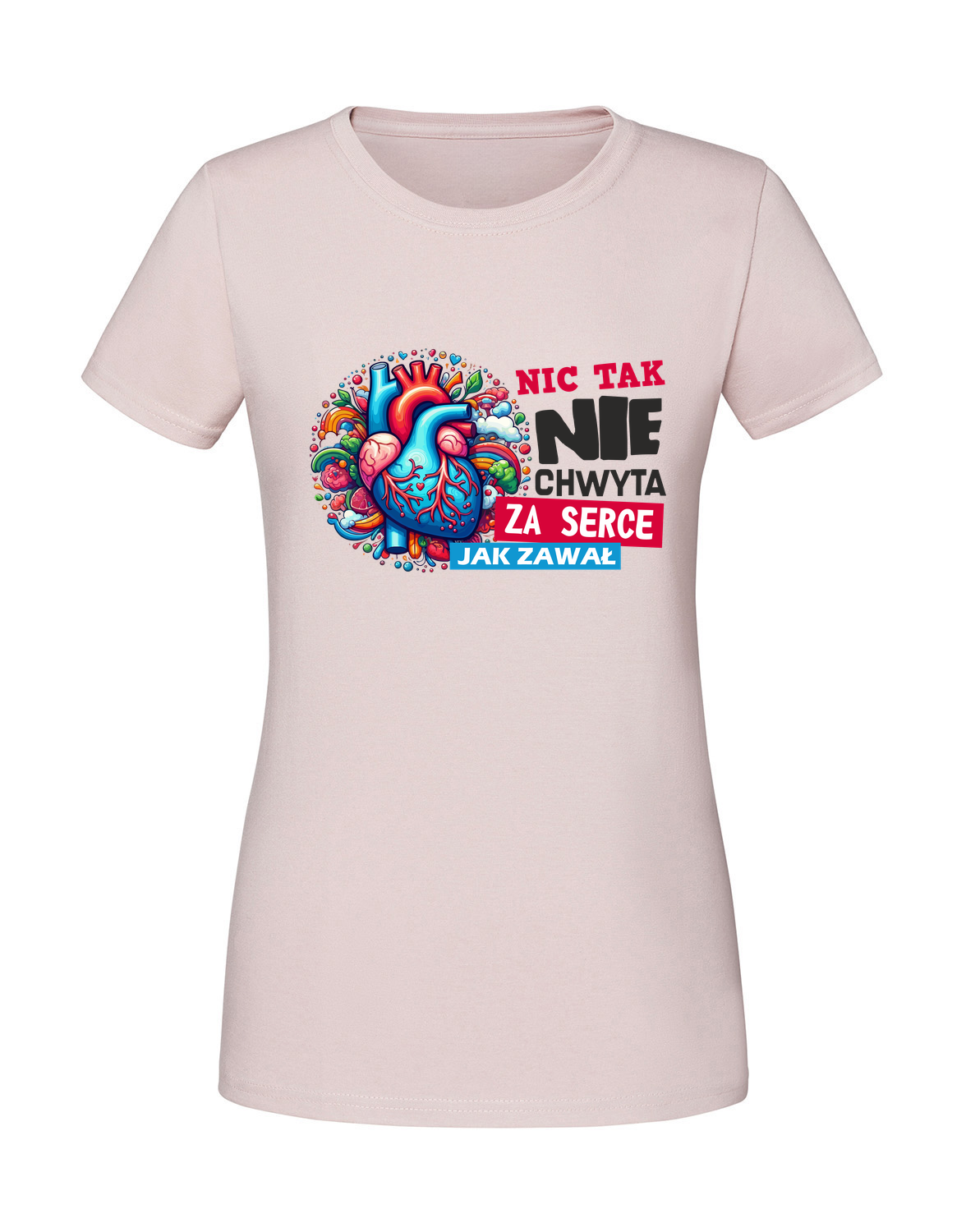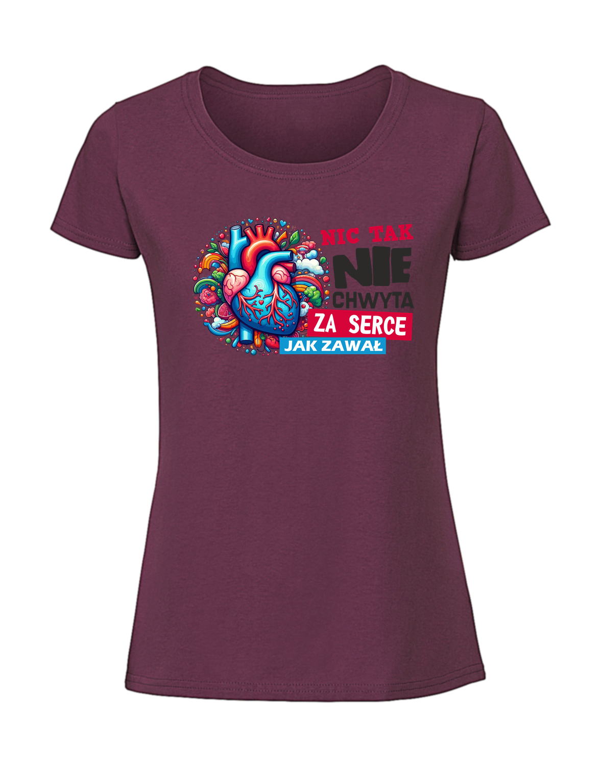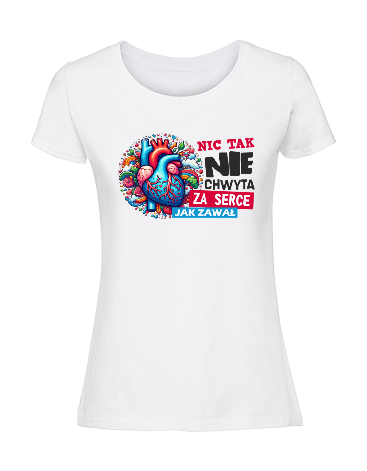 Damska koszulka z nadrukiem – nic tak nie chwyta za serce jak zawał