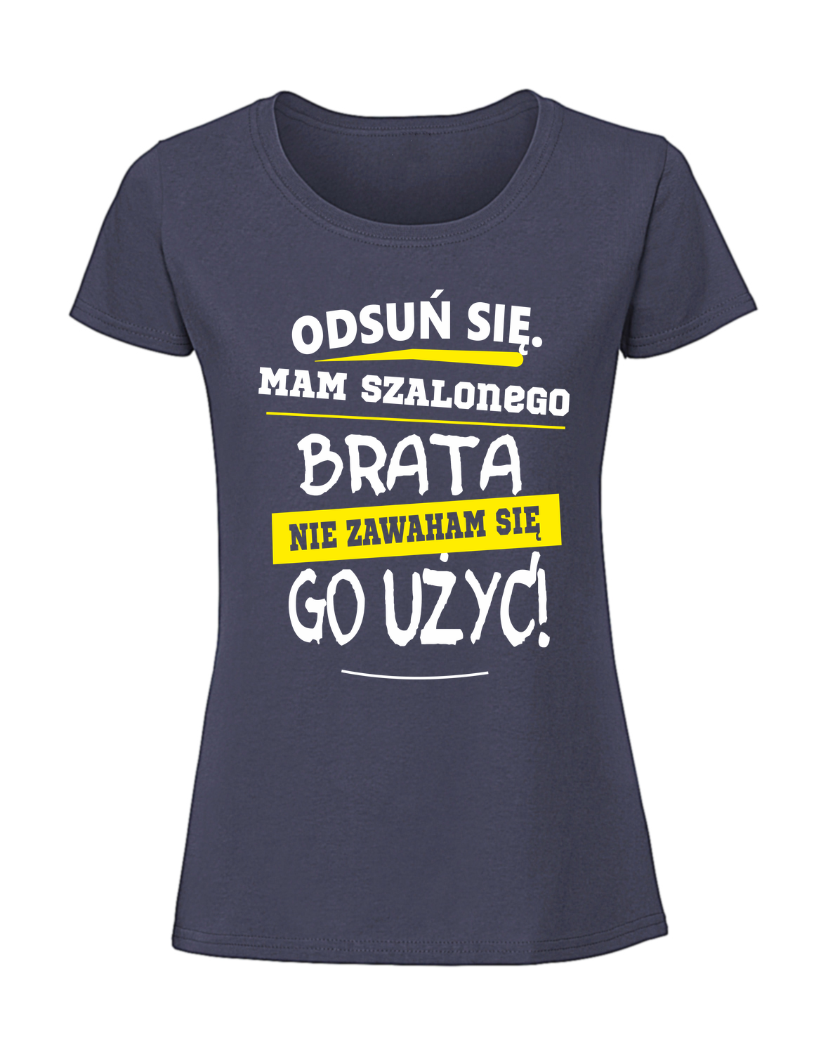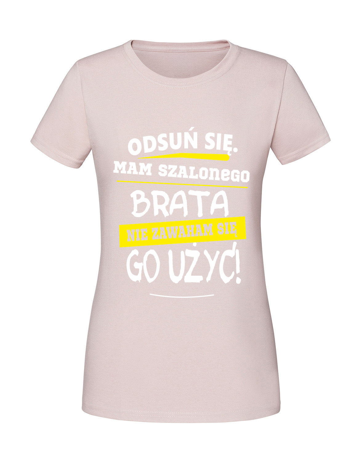 Damska koszulka z nadrukiem – ODSUŃ SIĘ MAM SZALONEGO BRATA I NIE ZAWAHAM SIE GO UZYC