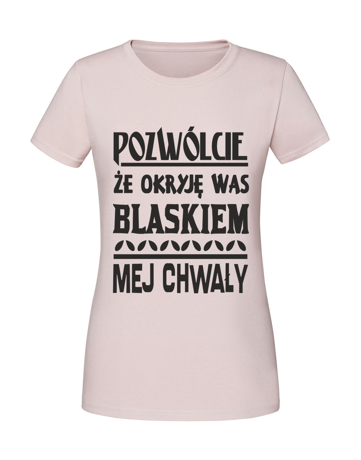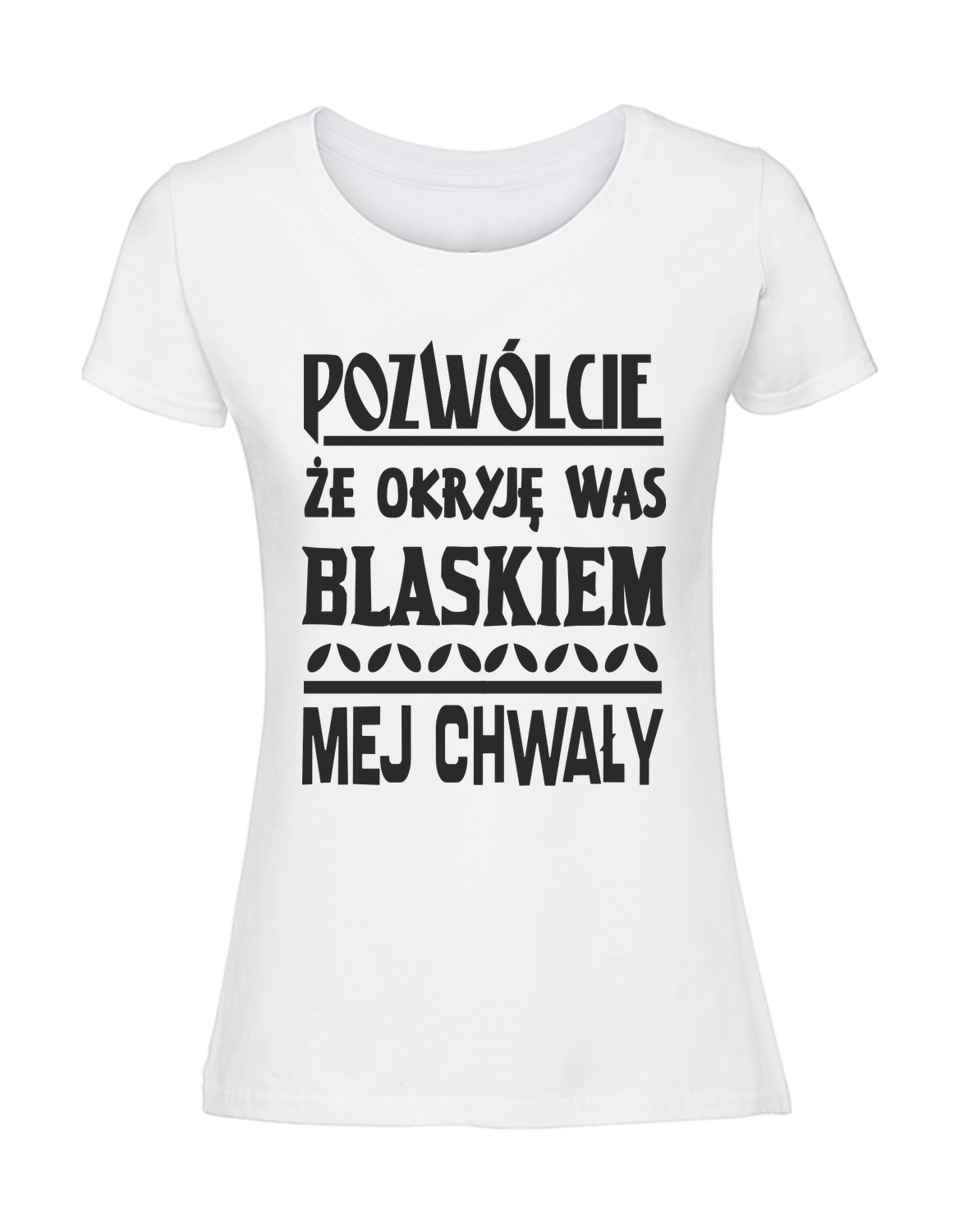Damska koszulka z nadrukiem – Pozwólcie że okryję was blaskiem mej chwały