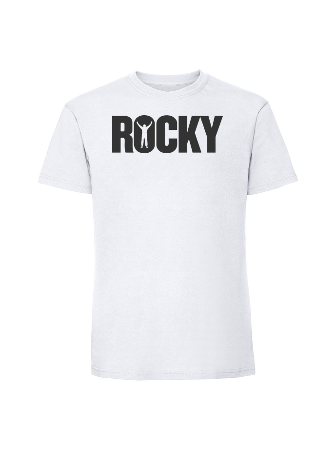 Męska koszulka z nadrukiem – rocky napis