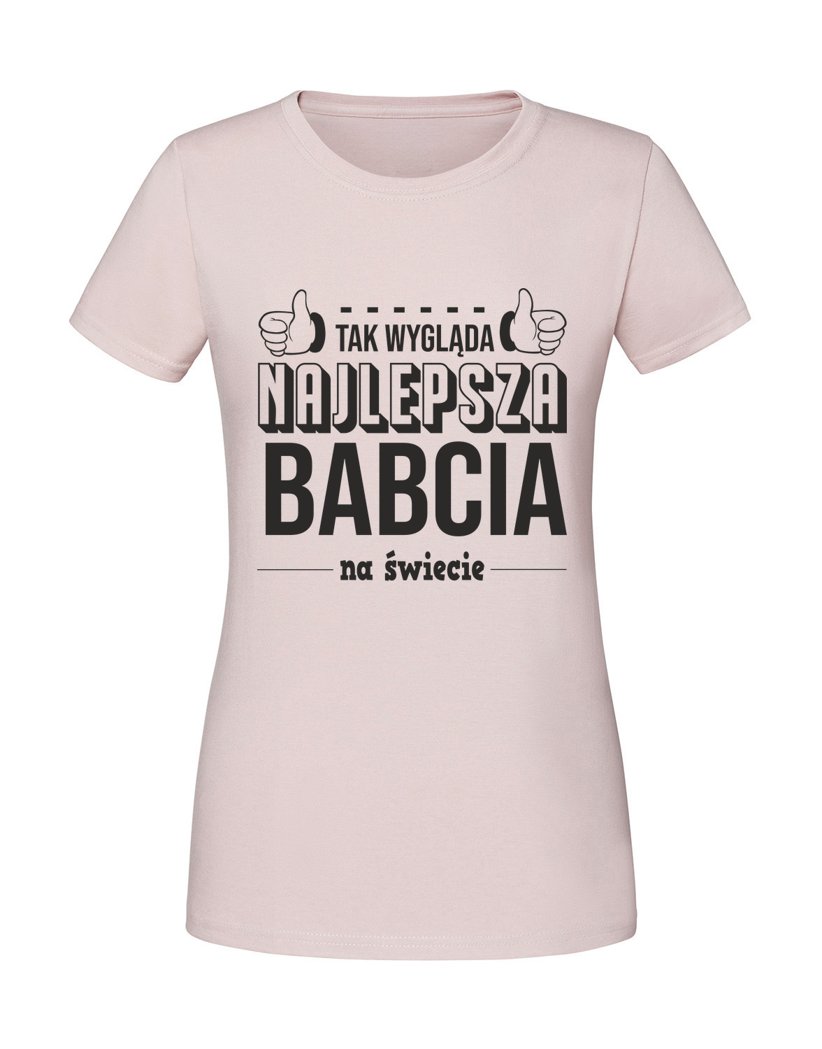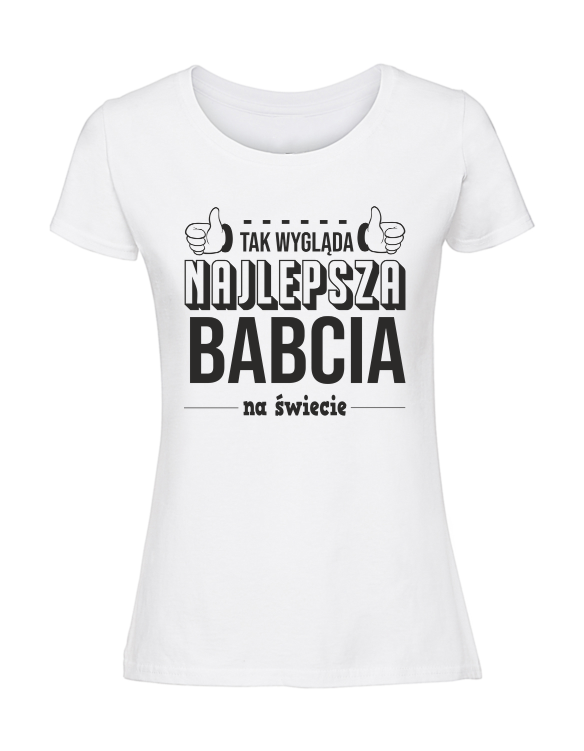 Damska koszulka z nadrukiem – tak wygląda najlepsza babcia na świecie nowy wspaniały świat