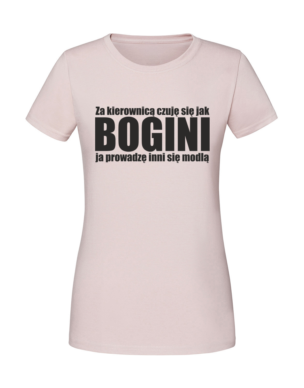 Damska koszulka z nadrukiem – Za kierownicą czuję się jak BOGINI, ja prowadzę inni się modlą
